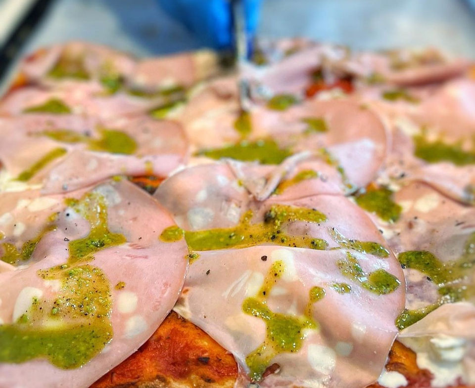 (Tomato sauce, Mortadella, Burrata Cheese, Pistacchio pesto)